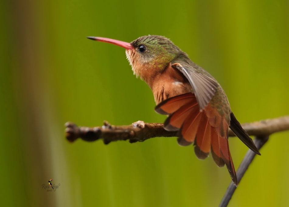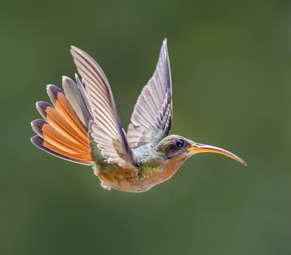 Cinnamon Hummingbird: The cinnamon hummingbird (Amazilia rutila)—clearly named for its color—is a long-winged variation endemic to western Mexico and down to northwestern Costa Rica. It thrives in dry forests, and is sometimes even spotted as far north as Texas and the southwest U.S. Besides its medium-brown underside, the bird can be identified by its dark wings and red, black-tipped bill.