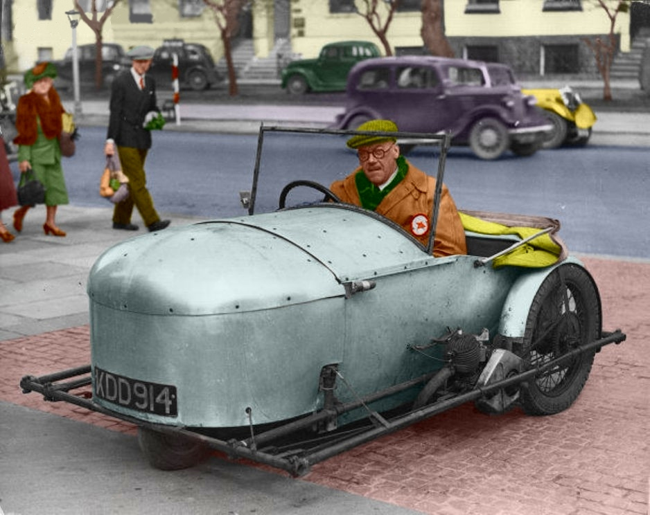 3. This guy looks like he belongs in the 1940s during World War II, although that is possibly the era this picture was taken. You never have to worry about friends asking for a ride home with this car.
