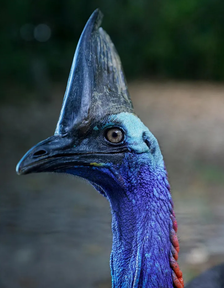 Cassowaries are certainly striking to look at, with a vivid blue face, two red wattles (flaps of skin) hanging from their neck and a hollow “helmet”, known as a casque, atop their heads.