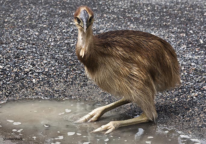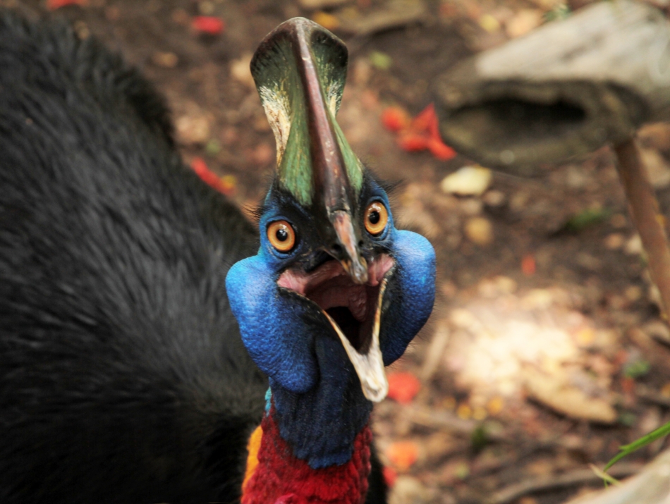 What to do if you encounter a cassowary: Do not feed cassowaries or leave out litter that the birds can easily access. This only encourages them to approach people and danger zones such as busy roads If travelling to an area where cassowaries are known to live, consider leaving your dog at home, or at least keeping your pet on a leash. Dogs are a big threat to young cassowaries and can also stress out adults, leading to aggression Keep your distance – particularly if an adult is guarding eggs or with chicks. If a cassowary does start acting belligerently, back away slowly or take cover behind trees or shrubs. Do NOT run, as these birds can outsprint us. If you’re wearing a backpack or bag, move it to your front in order to shield your chest.