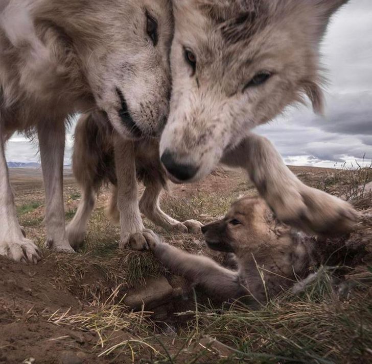 #20. “Arctic wolf cub and its parents”