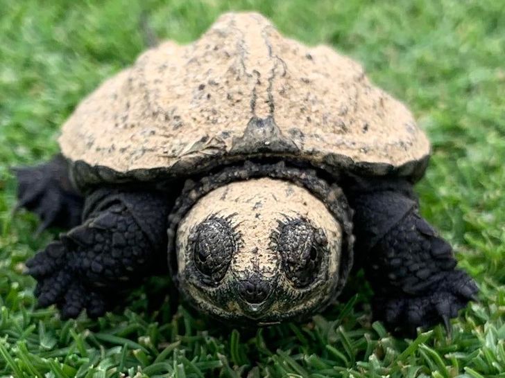 #8. “A newborn alligator (biting) turtle”