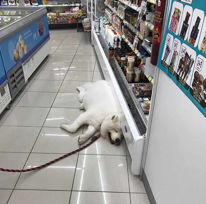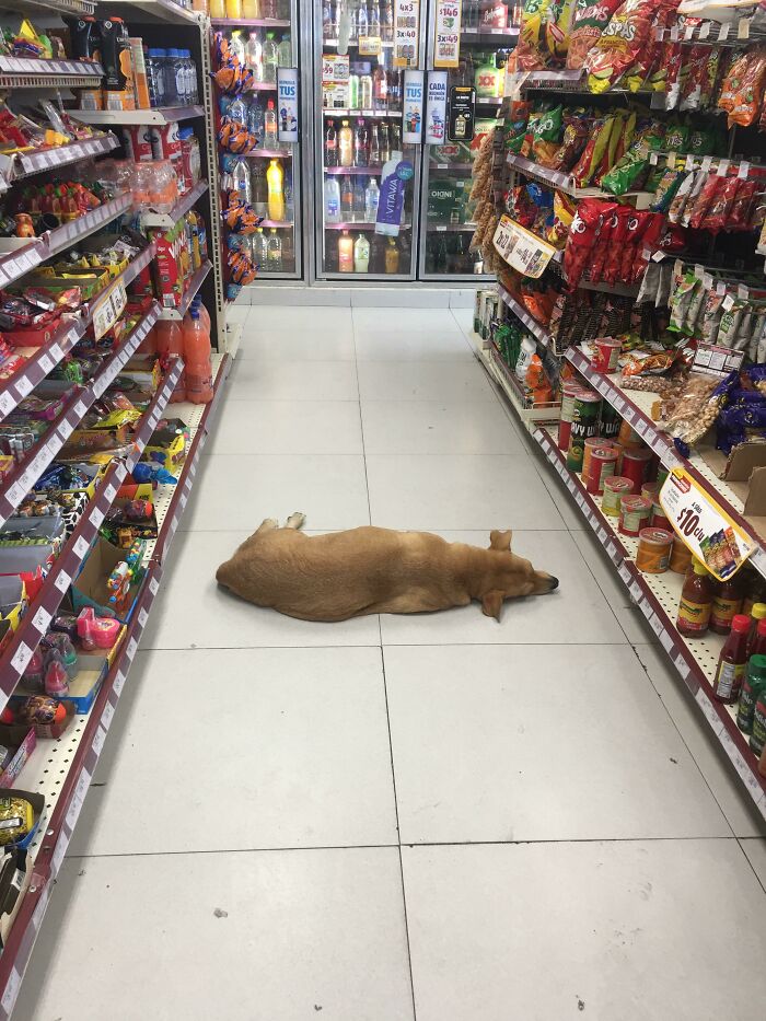 #12 Due To The Extreme Heat (40C) My Local Convenience Store Let A Stray Dog Inside To Cool Off