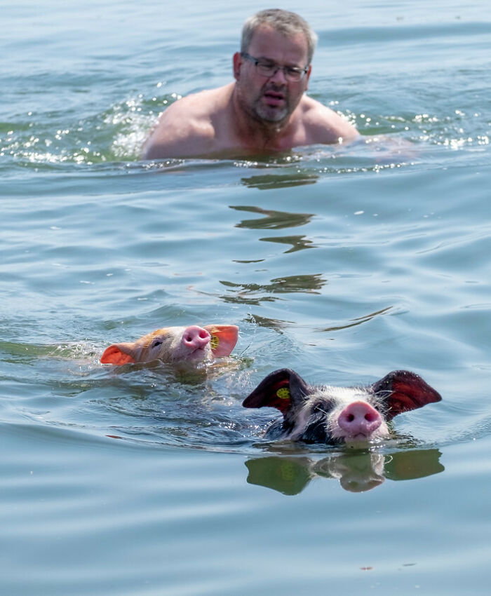 #8 Farmer Takes A Couple Of His Pigs To Go Swimming During Heatwave In The Netherlands