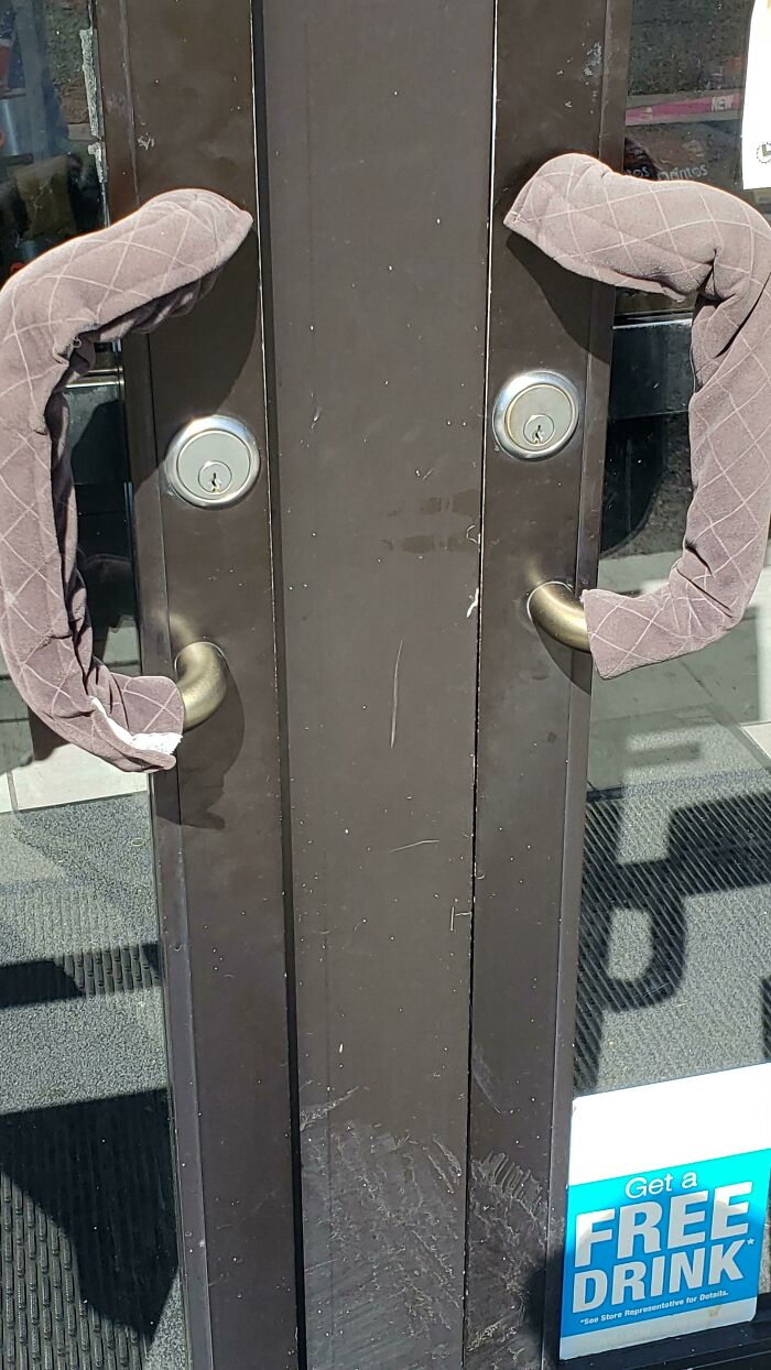 #26 It’s So Hot Here In CA That This Gas Station Puts Covers On The Door Handles To Prevent One From Burning Their Hands