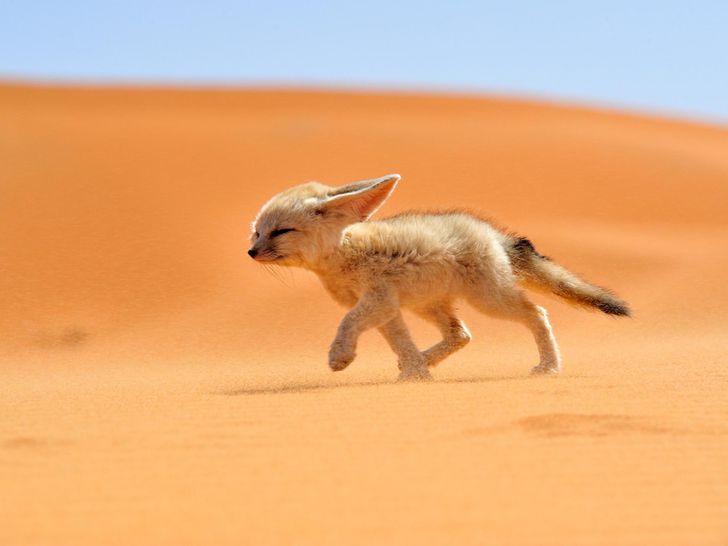 Fennec fox: The fennec fox’s unique build helps it thrive in the desert. Its huge ears are its signature characteristic, and its paws are covered in thick fur to protect it from the hot sand. What they lack in size they make up for in personality. They even purr like a cat when they are happy. These foxes dwell in small communities, each inhabited by perhaps ten individuals. Like other canids, male fennecs mark their territory with urine and become aggressive competitors when mating season arrives each year. Fennec foxes are opportunistic eaters. They forage for plants but also eat rodents, eggs, reptiles, and insects. Like most desert dwellers, the fennec fox has developed the ability to go for long periods without water.