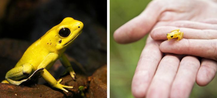 Golden poison frog: This pretty little frog is one of the most poisonous creatures in the world. They are not born poisonous, they get it from what they eat. They only use the poison for defense and it’s so strong that the toxins from just one frog can kill two elephants. These creatures are very rare and only live in the rainforest in Colombia.