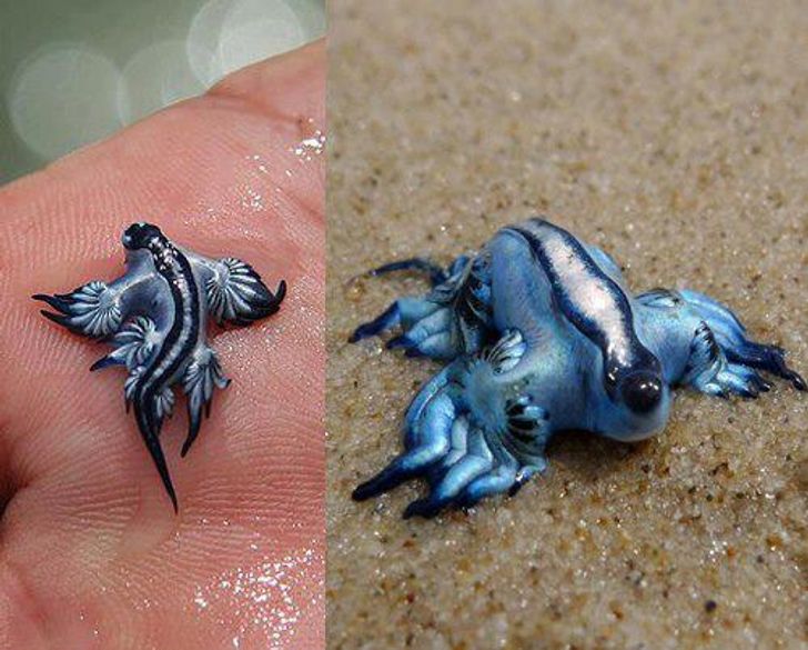 The blue dragon: This pretty sea slug developed the perfect coloring for hiding while floating on the sea surface. The sapphire side of the body faces upward and blends perfectly with the blue water, while the silver part faces downward so it can’t be seen by predators from below. The blue dragon is not poisonous but it can gather poison from what it eats, concentrate and store it, and use it if it gets attacked.