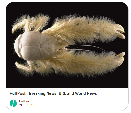 Hairy-chested yeti crab: The hair which gives this crab its name is not just scary but also practical. They actually eat the tiny microbes that grow on it. They live near the very hot hydrothermal vents in Antarctica which make their life a constant adventure, as one wrong move could mean being boiled or frozen.
