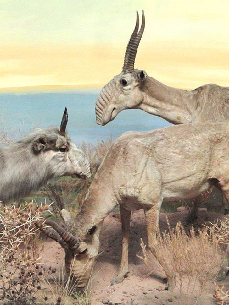 Saiga: This antelope can be easy recognized by its head with a very mobile nose and long colored horns. Unfortunately, saiga are listed as critically endangered and there is a high chance of the full extinction of this beautiful animal in the wild. The population of a rare type of antelope has more than doubled since 2019, in a remarkable turn around in fortunes. According to the first aerial survey in two years, the number of saiga in their Kazakhstan heartland has risen from 334,000 to 842,000. There were fears the animal was on the brink of extinction following a mass die-off in 2015.