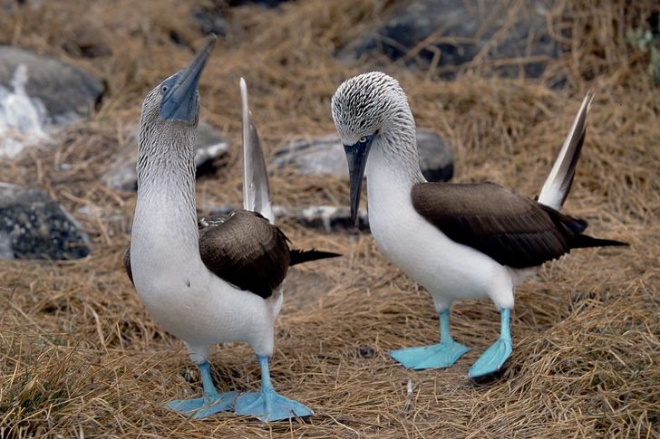 Blue-footed booby: This gorgeous bird looks slightly surreal with its bright blue feet. They got their name from the Spanish word “bobo” which means “foolish.” The reason for this is that these birds walk very funny on land. North Seymour is one of the Galapagos’ best seabird breeding grounds, with blue-footed boobies occurring at high frequency. Large breeding populations can also be found on many other islands south of the equator – including Espanola, Fernandina, Floreana, Isabela, Pinzon, and Santa Cruz.