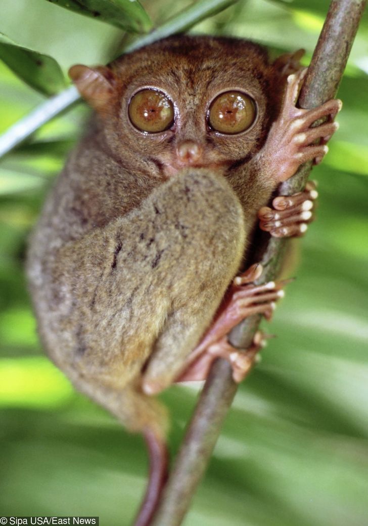 Tarsius: These little primates have a very interesting appearance and look more similar to lemurs, than monkeys. They spend their entire life in trees, sleeping, eating, reproducing, and just jumping from one tree to another. Unfortunately, they are extremely rare now, mainly because of habitat loss.