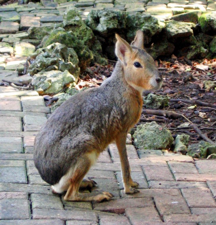 Patagonian mara: This animal, which looks like a crazy mixture of a few animals – the ears of a rabbit, the front legs of a deer, the rear legs of a kangaroo, and a cute short tail. They have only been found in Argentina. The Patagonian mara is an excellent runner and jumper. It can run up to 30 mph and leap up to 6 ft in the air.