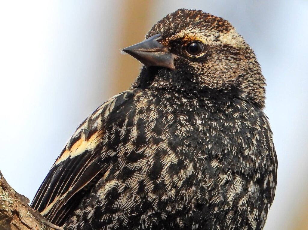 Jennifer Hardison spotted this juvenile red-winged blackbird high in a tree in Athens, Tennessee. Females of this species are dark brown overall with crisp streaks, paler on the breast with whitish eyebrows.