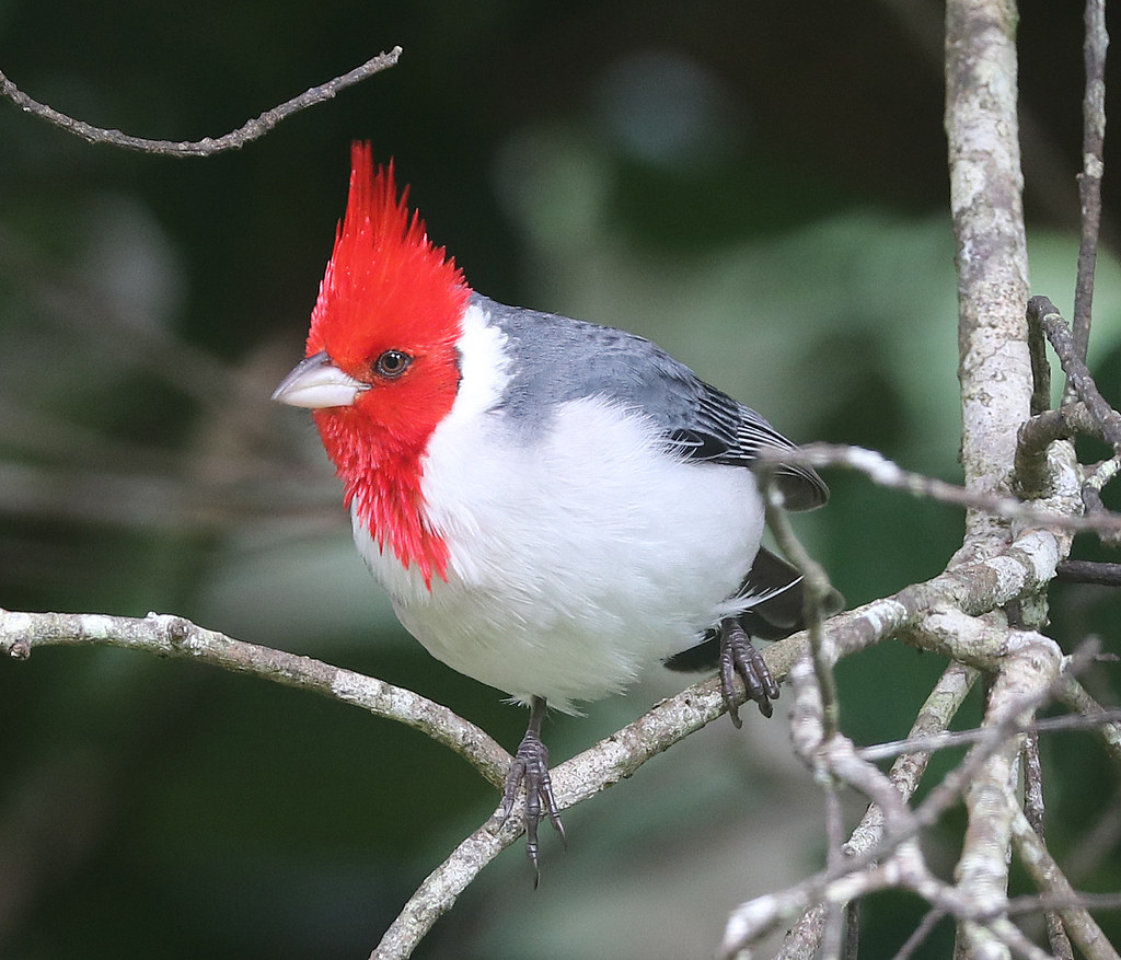 Endemic to South America, the red-crested cardinal can also be found in northern Argentina, Bolivia, southern Brazil, Paraguay, and Uruguay. The species has also been introduced to Hawaii and Puerto Rico and may be found in other areas of Brazil outside its normal original range.
