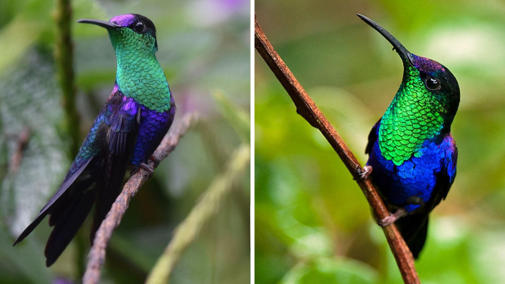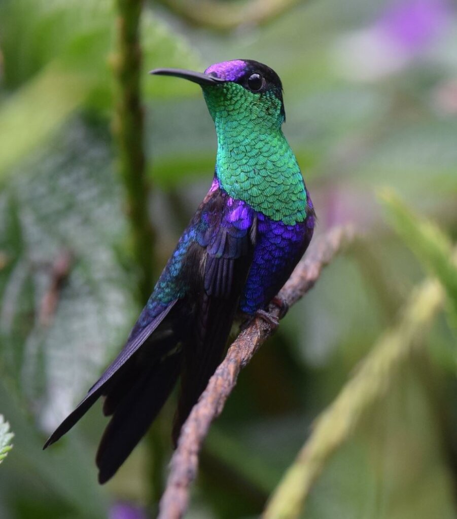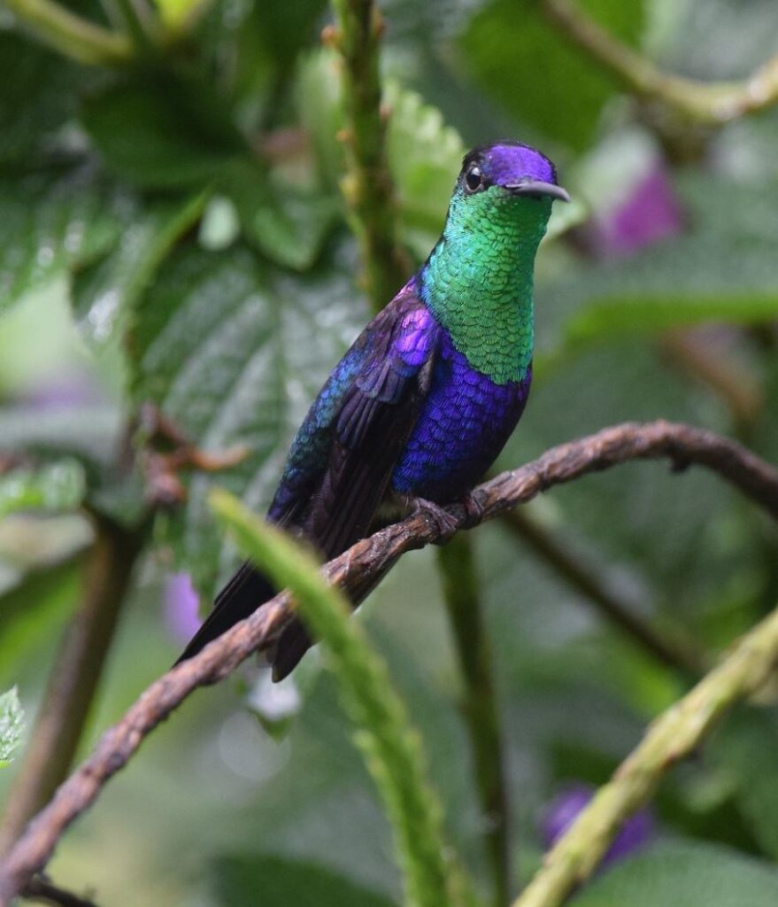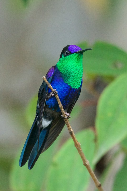 This striking hummingbird is scintillating, to say the least, with his glittering iridescent combination of blue and green.