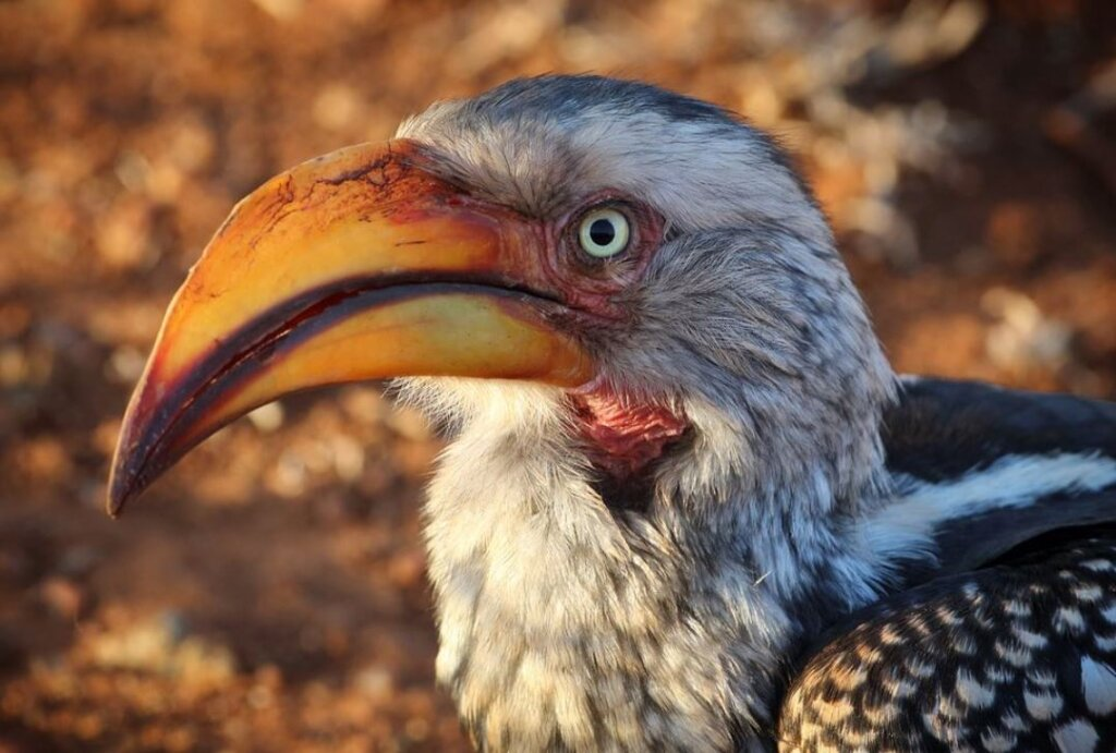 Yellow-billed Hornbill likes to dine on insects, rodents, fruits, and seeds, as well as snakes, lizards, and scorpions.