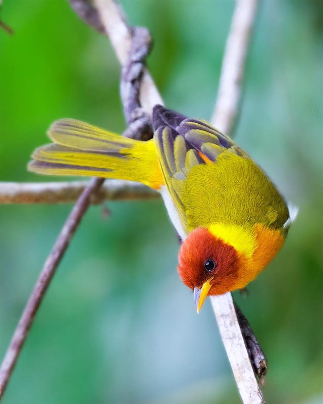An omnivorous bird, the Rufous-headed tanager can be found feeding on small insects and native fruits mainly in the canopy and in the upper levels of the forest.