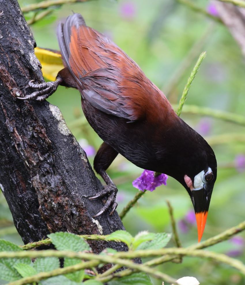 Montezuma Oropendola likes to live in the forest canopy, along forested edges and old plantations.