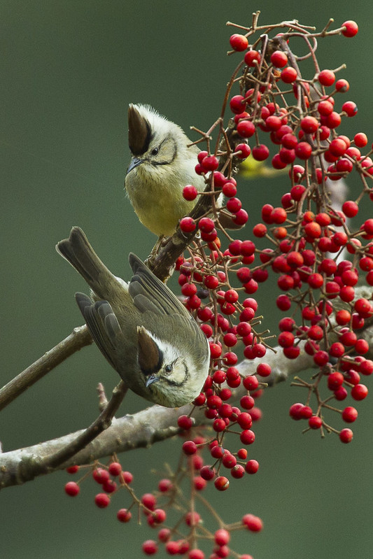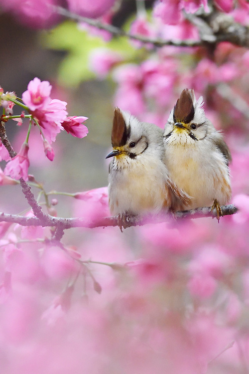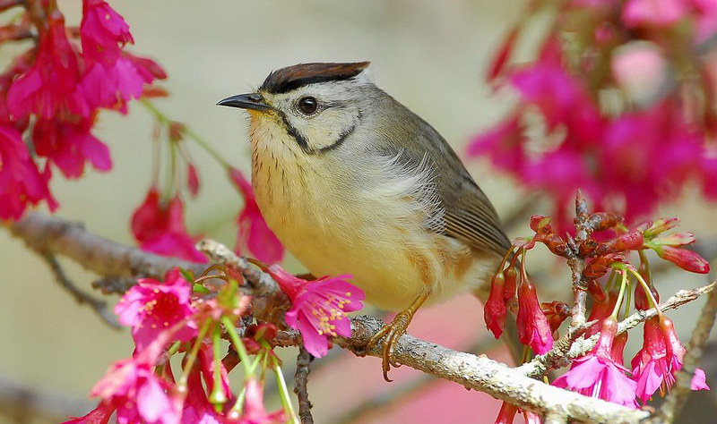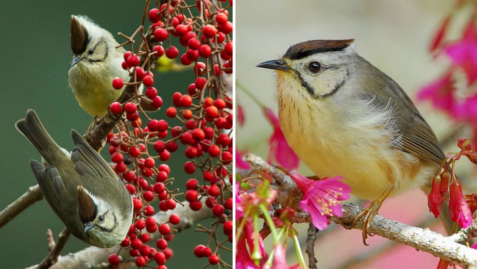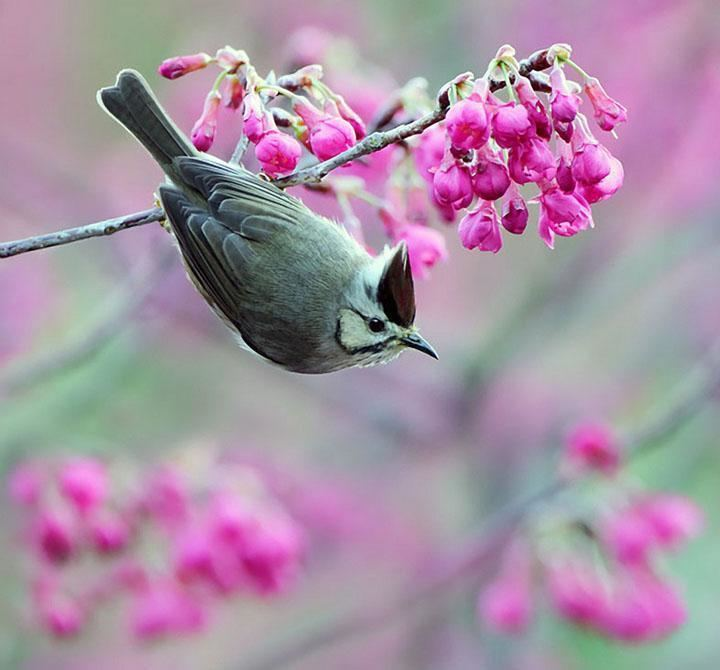 Taiwan yuhina like to feed on nectar from cherry blossoms and other flowers. It is also thought they probably also dine on small invertebrates and maybe fruit.