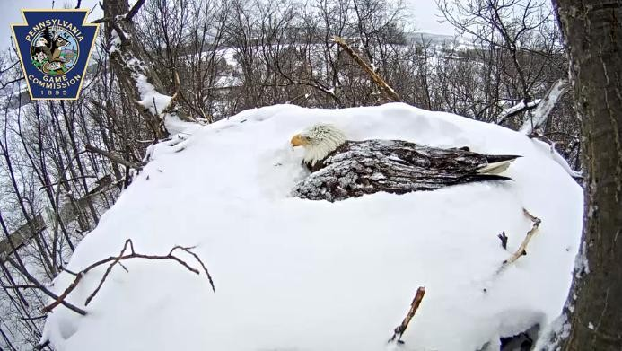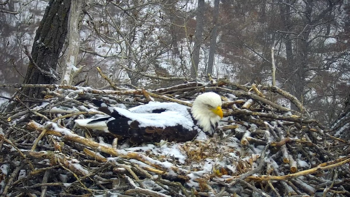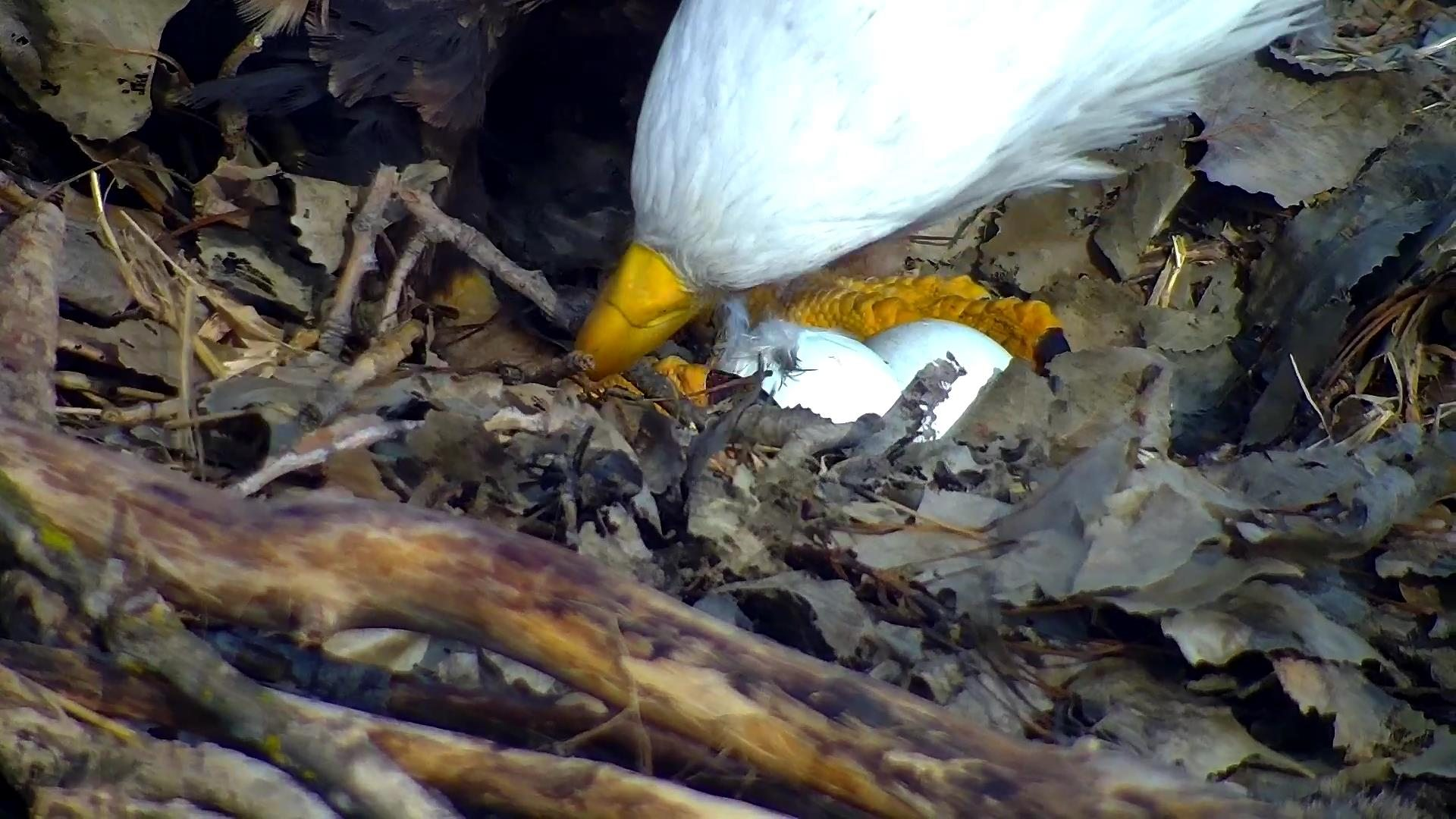 There could be more eggs to come. Image credit: Nongame Wildlife EagleCam, Minnesota Department of Natural Resources