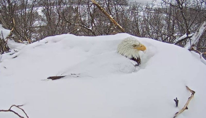 A large amount of snow has fallen in Minnesota this week, and those watching the live coverage on Thursday morning local time could see the eagle almost completely buried, Insider reported. The animal finally stood up, shook off the snow and tidied up its nest. The other bird returned to the nest shortly after and took over incubation duties.