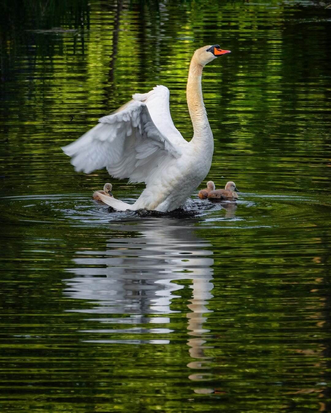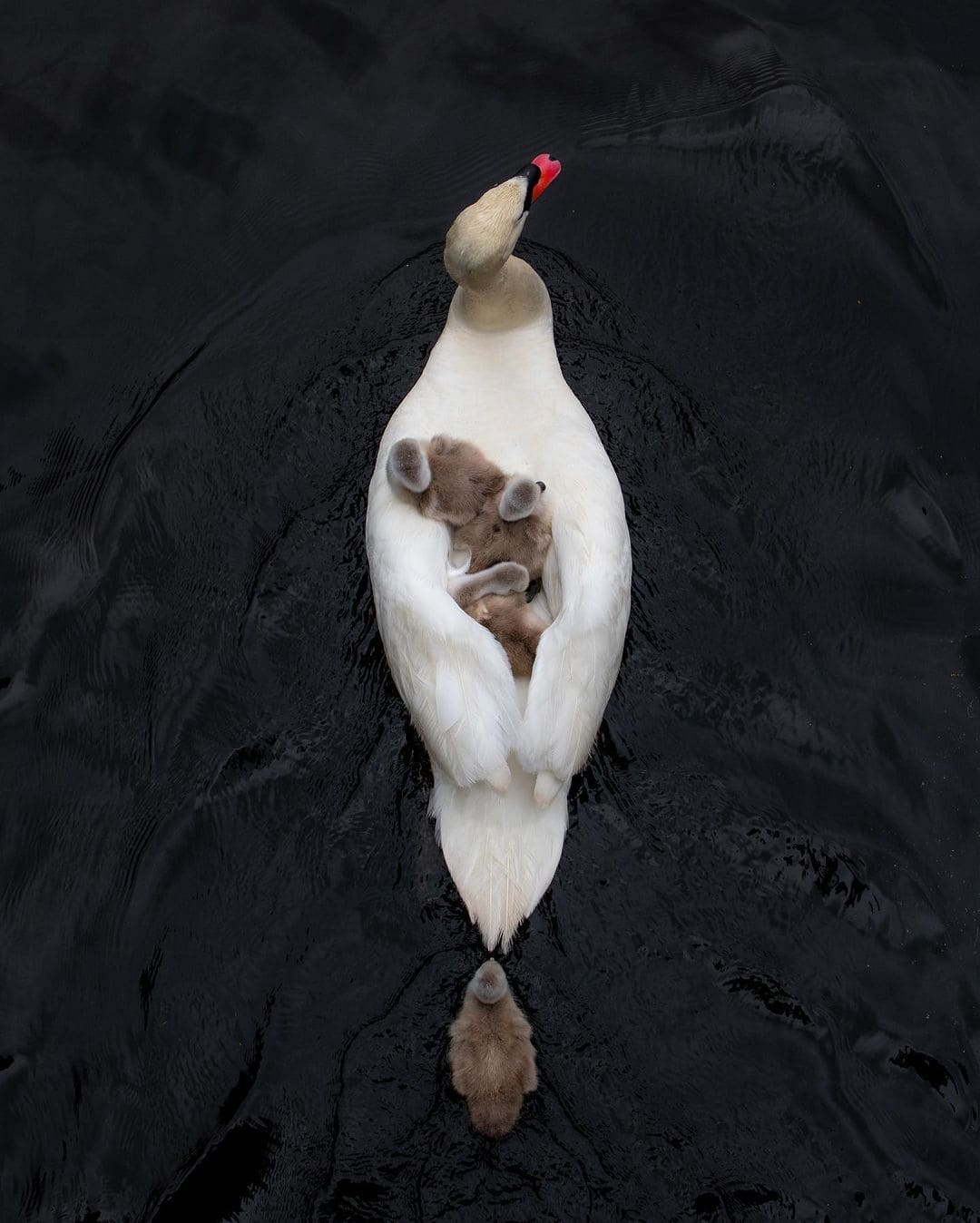 The father swan did, guys. He took the responsibility of his partner and cared for his youngs on his own. He cuddled his babies and let them snuggle under his wings. The single swan dad even carried six on his back while swimming on the lake. We do believe that this is the safest and most comfortable “ferry” that cygnets have ever sat.