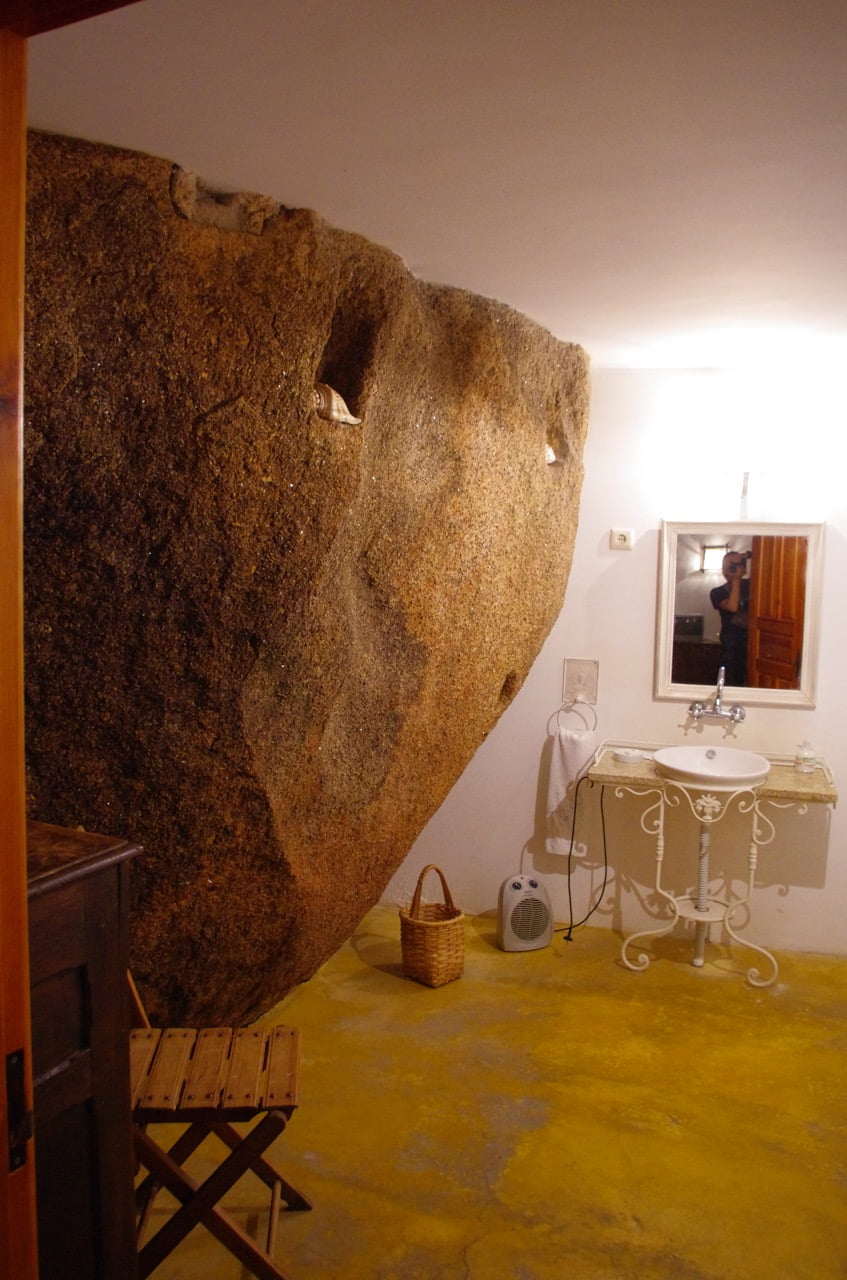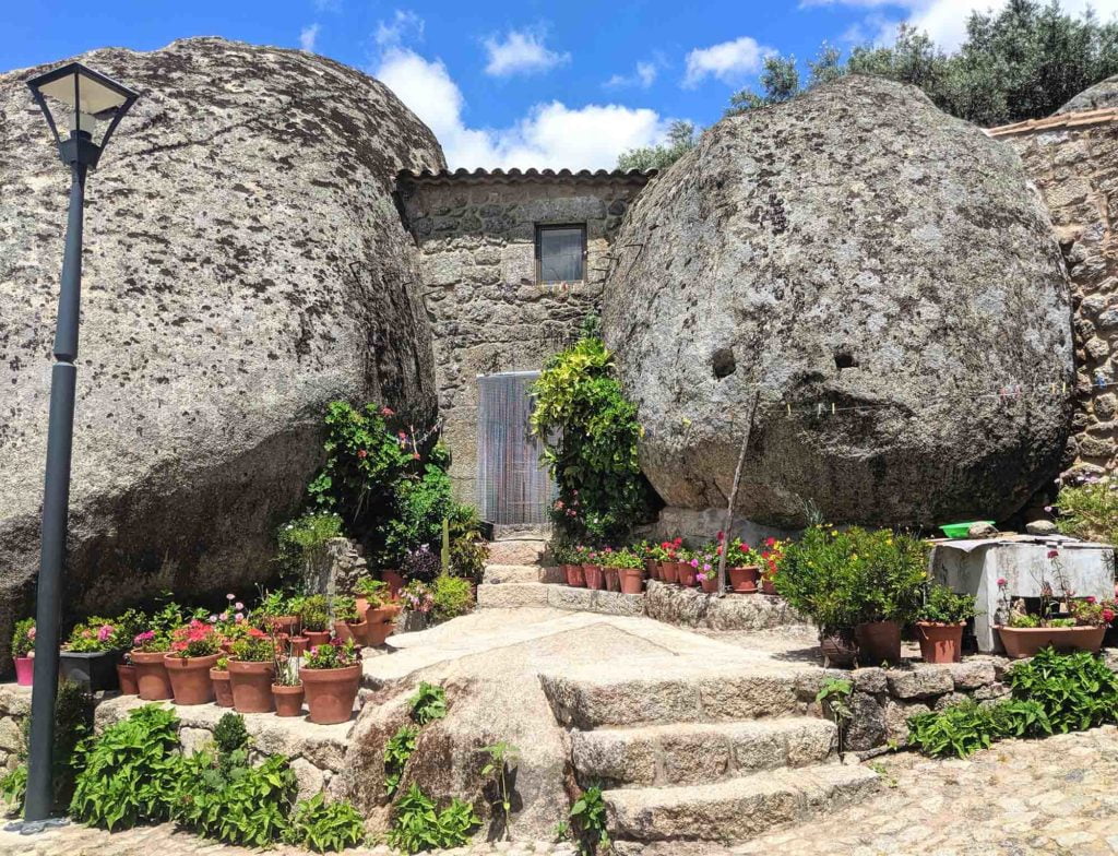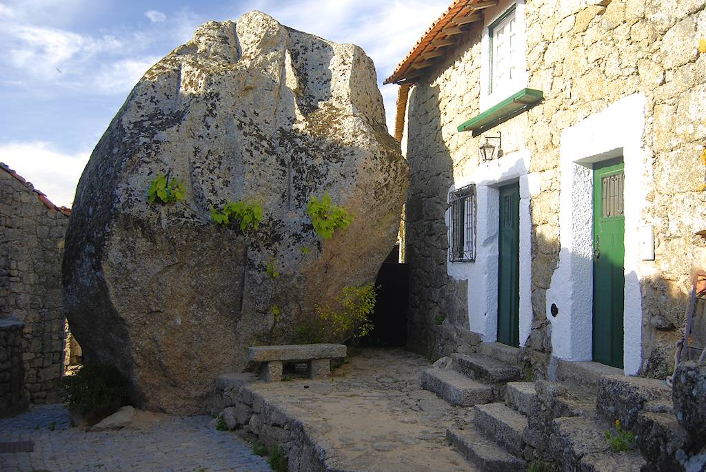 Monsanto’s tiny streets wind at a steep grade past red-roofed cottages tucked against mossy boulders. Some of the boulders are actually fitted with doors, leading to structures carved right into the rocky landscape.