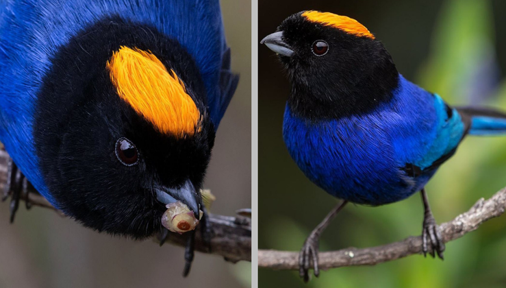 Even though this bird is uncommon in its range, due to the exten of its range it is regarded as of Least Concern on the IUCN Red List. If you fall in love with the cobalt blue, bright yellow and jet black plumage of these golden-crowned tanagers, just introduce them to your family and friends. Nature is amazing.