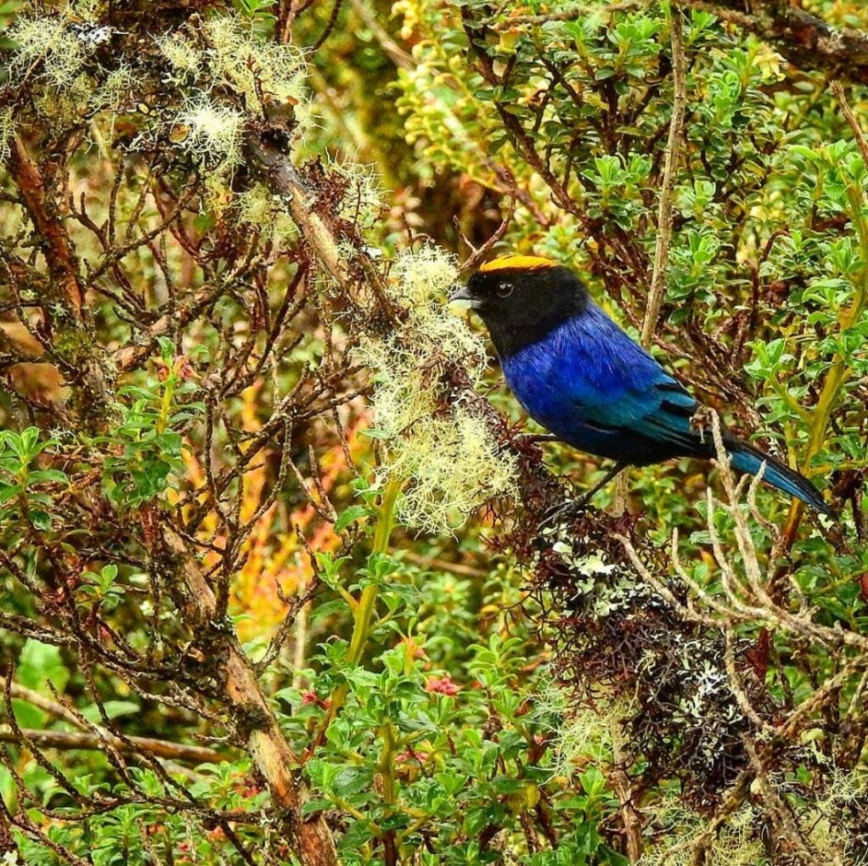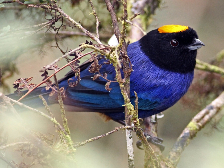 The golden-crowned tanager is a species of bird in the Thraupidae family. It’s native to Colombia, Ecuador, Peru, and Venezuela. These birds feed mainly on seeds, fruits, nectar, flower parts. As an omnivorous species, they also seek insects for food. They distribute on opposite sides of the Marañon Valley in Peru. They are commonly found in subtropical and or tropical moist montane forests.