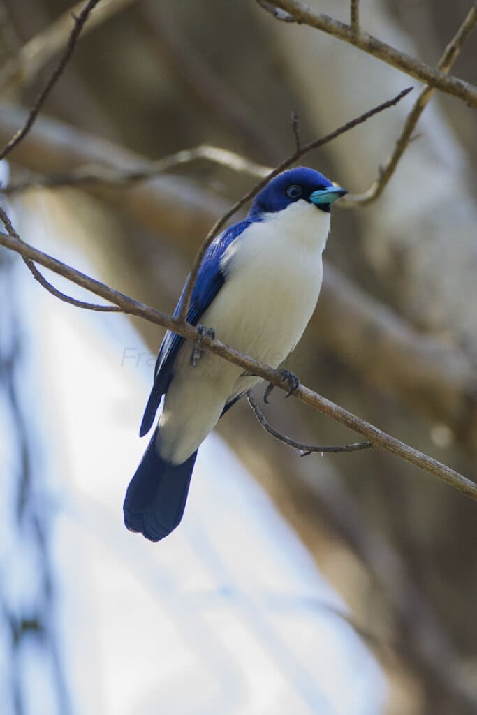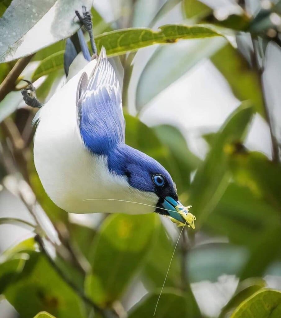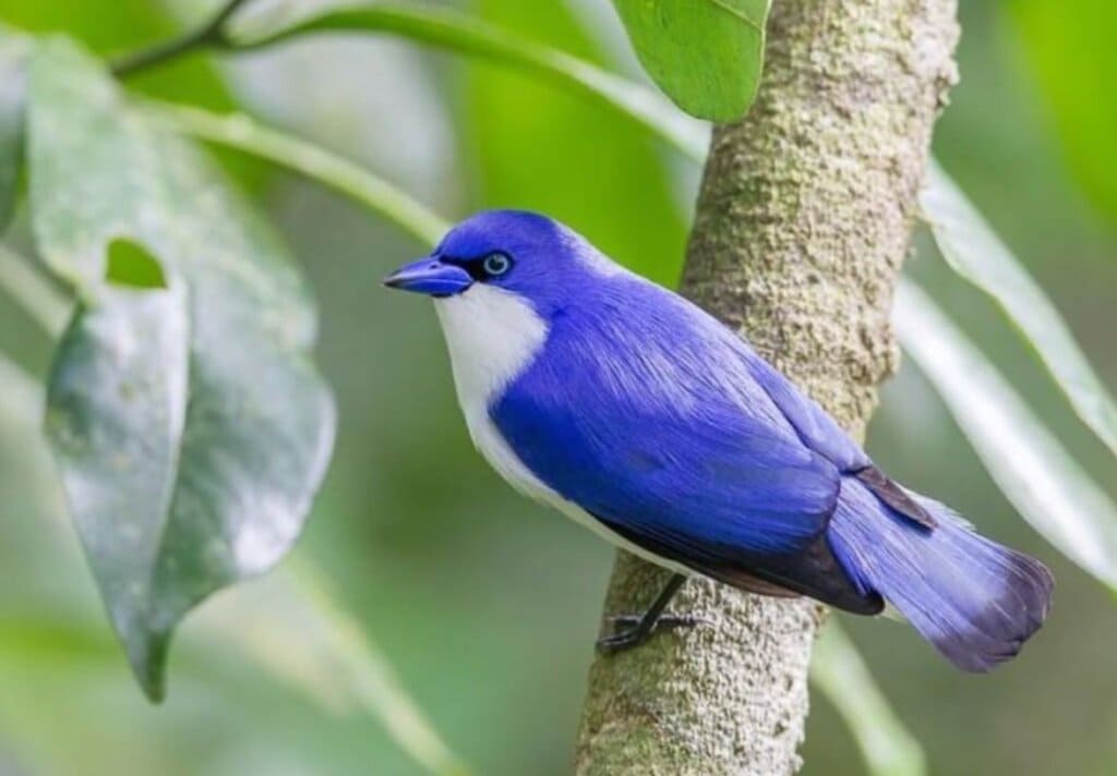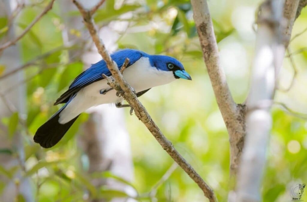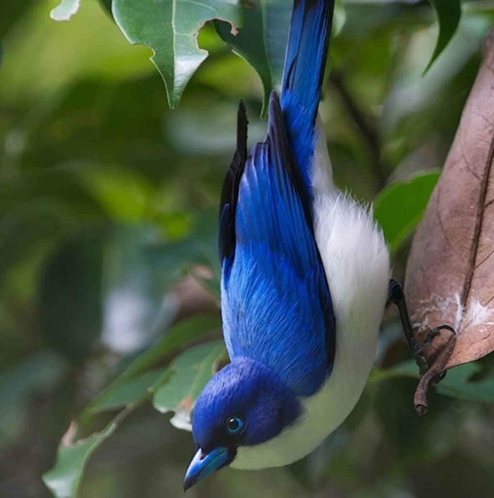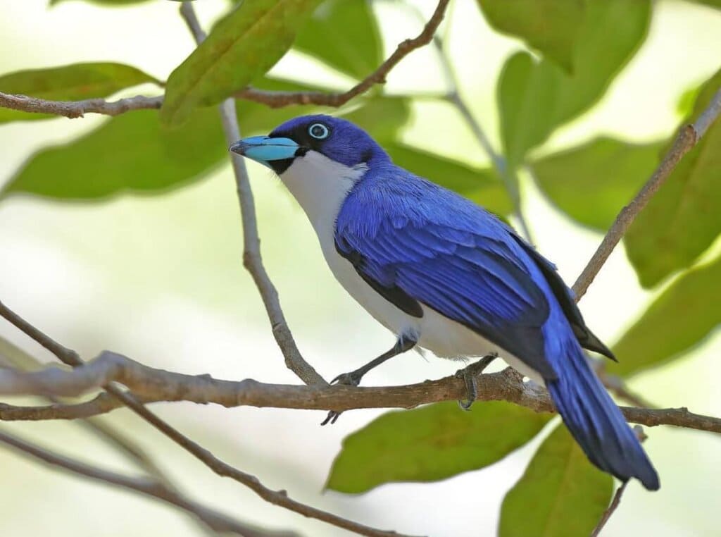 The blue vanga is among these outstanding birds. It has cornflower blue plumage with pure white underparts. Its bill is eye-catching with sky blue color. This bird also has black tips on the edges of the wings and tail.