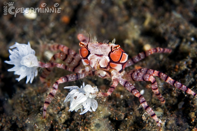 If provoked or attacked by a predator, the boxing crab will threaten the aggressor and try to deter it by waving it’s anemones around, the tentacles of which are well-armed with cnidocytes (stinging cells). Interestingly, the very special relationship the pom-pom crab has with the sea anemone – being carried in it’s claws – is not essential for the survival of either species.
