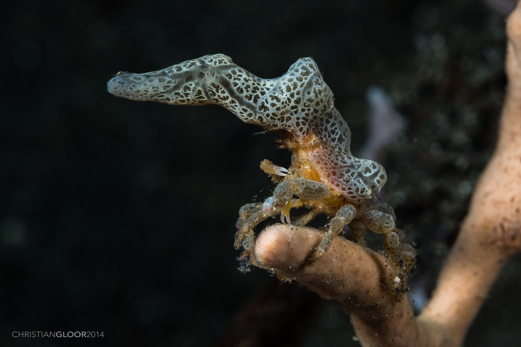 Undetermined decorator crab photographed in Wakatobi Dive Resort, Indonesia. Image credit: Christian Gloor