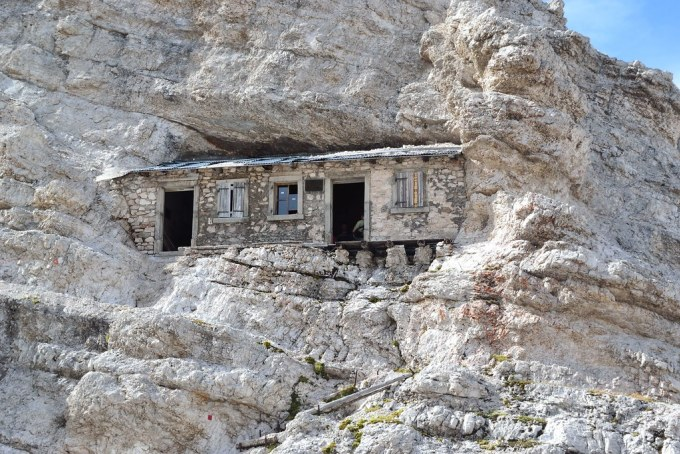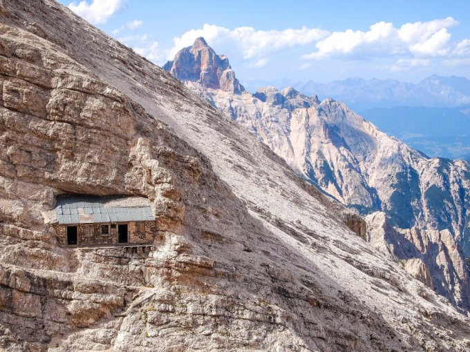 The house, built during World War I, is nestled deep in a vertical rock face in the Monte Cristallo mountain range, within the Ampezzo Dolomites natural park. Its unusual location puzzled many for years, as they couldn’t understand how it was possible to build such a structure. Photo: Flickr.
