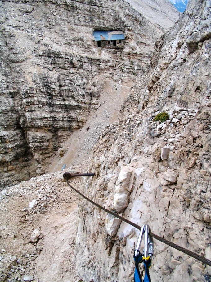 The trail leading up to the house is part of the Via Ferrata Ivano Dibona (pictured), a challenging high-altitude route along the Zurlon mountain ridge on the main peak of Cristallo in the Dolomites. Accessing this location requires individuals with excellent physical strength. Photo: Dolomiti.