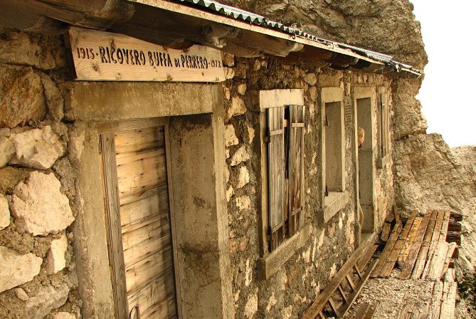 The locals believe that Italian soldiers created this house as a shelter to rest during their fights against the Austro-Hungarian army on the treacherous terrain. The house is deeply carved inside the mountain, with excellent camouflage abilities. If you’re not observant enough, it’s challenging to spot Buffa di Perrero on the rock face.
