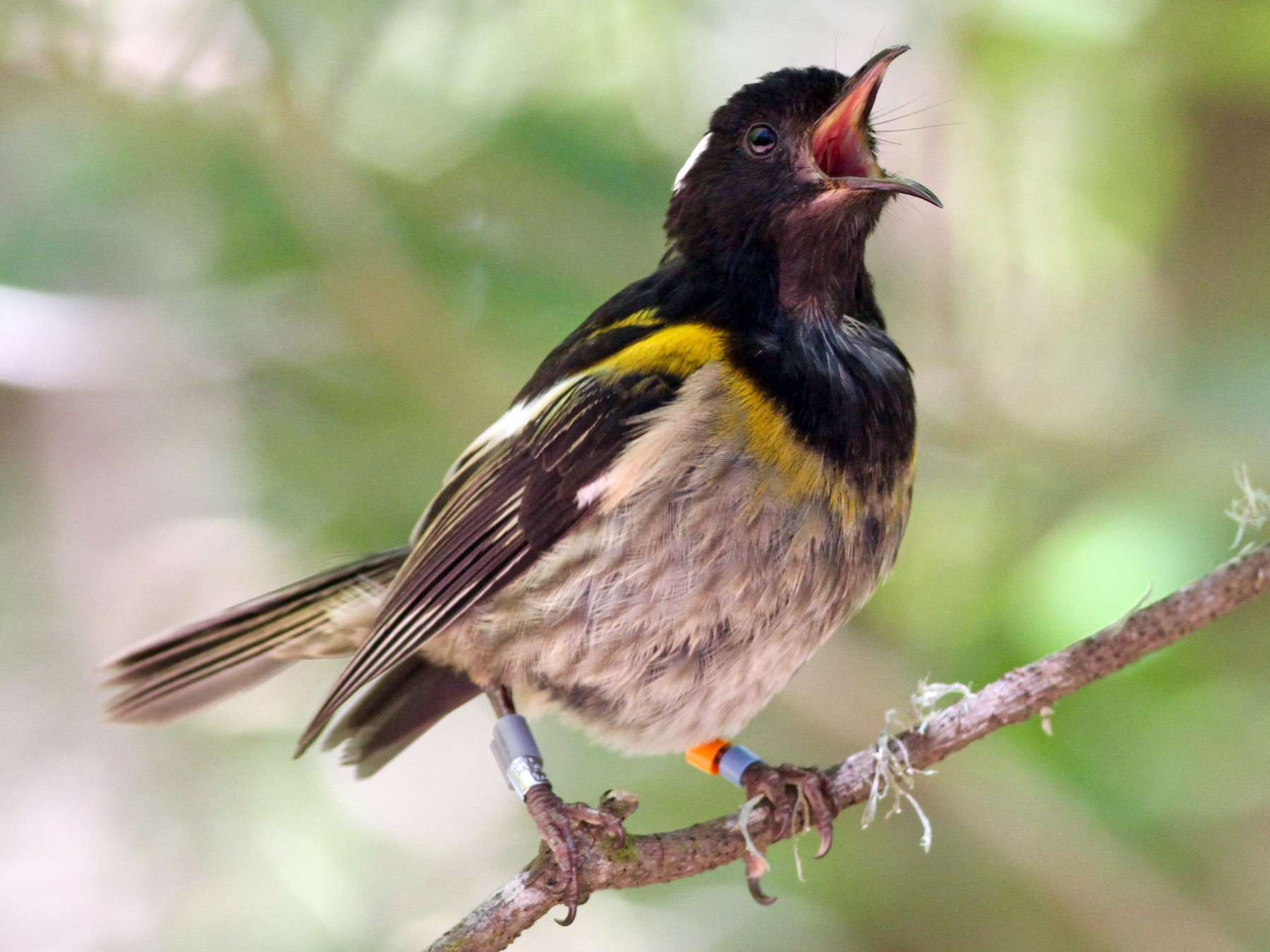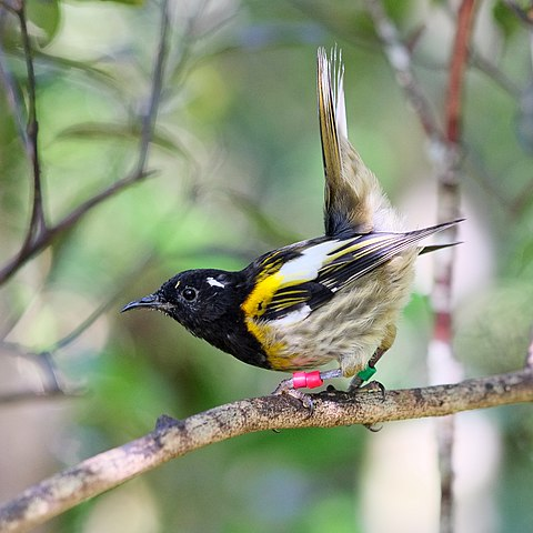 The stitchbird can be found in a variety of temperate forest habitats, requiring mature forests with plenty of tree holes for nesting. They are present from sea level up to an altitude of around 750 m.
