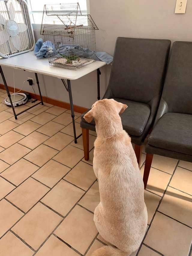 Davila approached Hiro and saw a baby bird in need of help. It was clear that Hiro wanted his owner to save the baby bird. “I instantly looked for a towel and picked her up,” Davila said. “She was very defenseless and helpless.”