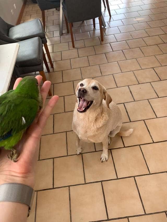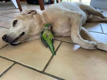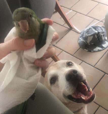 A vet visit revealed the bird, a baby Quaker parrot, was paraplegic due to falling from her nest. That meant she wouldn’t have survived if Hiro had not found her in time.