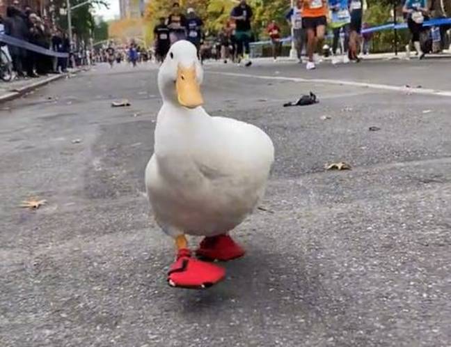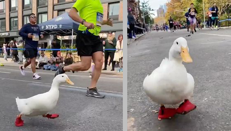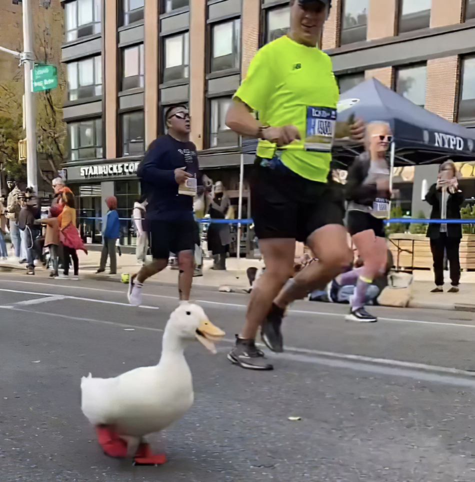 Perfectly equipped with a pair of red running shoes, the white duck did a great job, though. And the now viral videos of her competing among the other runners on the streets of NYC, stands for it. After all, Wrinkle might not got herself a medal or so, but she became an internet star, and her parents are so proud of her performance.