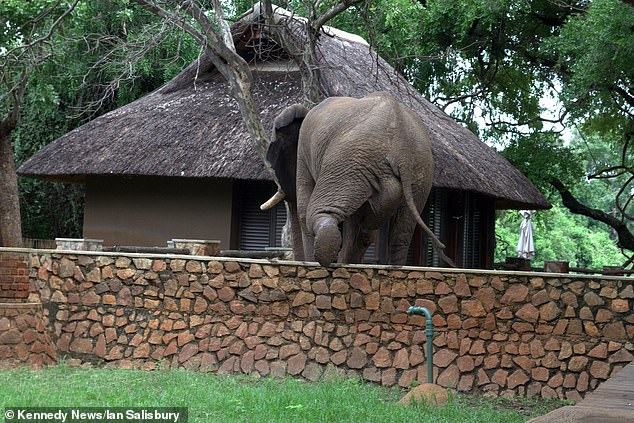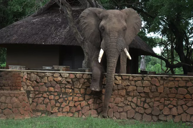 “He just chose the most direct route and made himself right at home,” says Mfuwe Lodge’s general manager Ian Salisbury. “The guests were very amused at the idea of a climbing elephant. They were in amazement that it would bother to climb over such a high wall. He was a stranger to us. He wanted to investigate. He wanted to get into the central area where this big mango tree grows.”