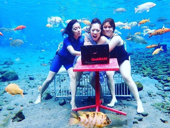 Located in Indonesia’s Central Java region, Umbul Ponggok is a small pond measuring just 20 meters by 50 meters, but boasting the cleanest water imaginable. It is continuously fed with fresh water from 40 different springs, at a rate of 800 liters per second, so the water is always crystal clear. It’s this fascinating property that makes Umbul Ponggok an ideal location for underwater selfies, and in the age of Instagram you’d best believe people are taking advantage of it.