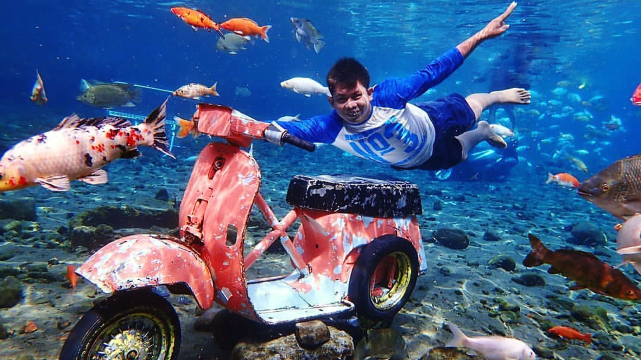 Thousands of people travel to Umbul Ponggok every weekend, and the local authorities make sure that they are not disappointed. As underwater selfies are the most popular among visitors, they’ve set up all kinds of props on the bottom of the pond, such as motorcycles, benches, even old TV sets, all things designed to make photos stand out. And it even has its own Instagram account, with over 40,000 followers, where the coolest underwater photos are featured.