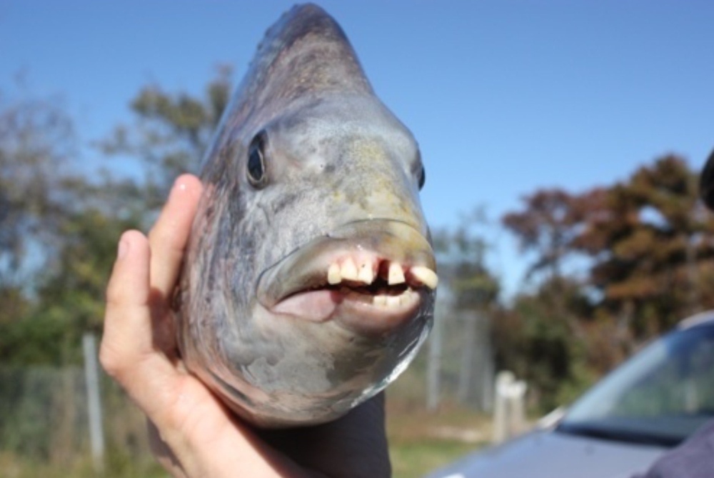 The animal was identified as a sheepshead fish (Archosargus probatocephalus), which has several rows of molars to crush prey, including their shells. Apparently, the fish has been so named due to its mouth looking like the mouth of a sheep.