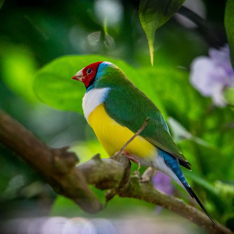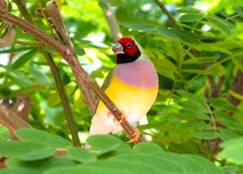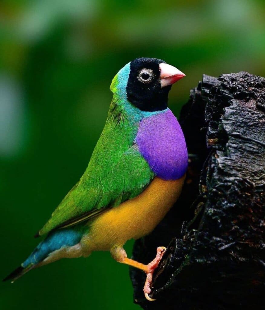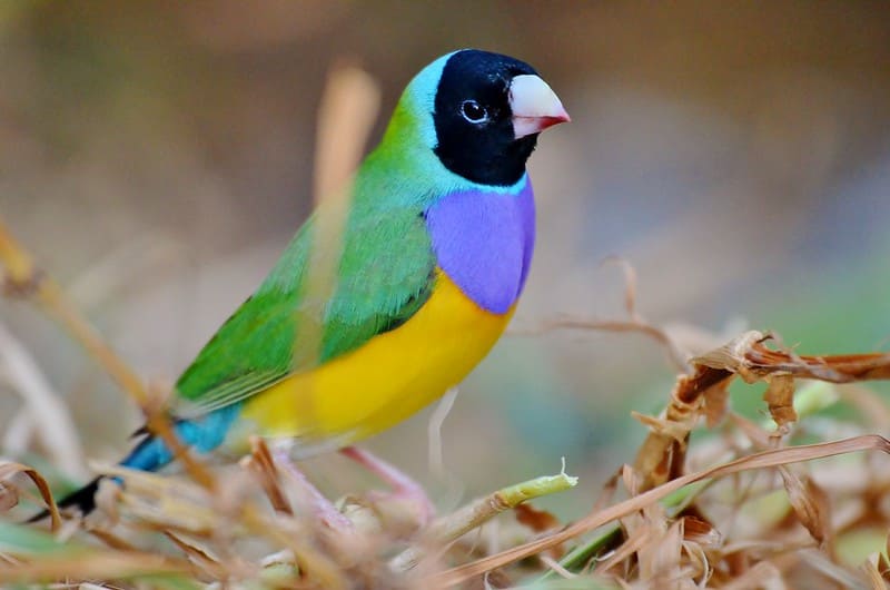 The Gouldian finch is famous and prized primarily for its spectacular plumage. Interestingly, both male and female birds are all brightly colored, while it’s only male birds in many other species.