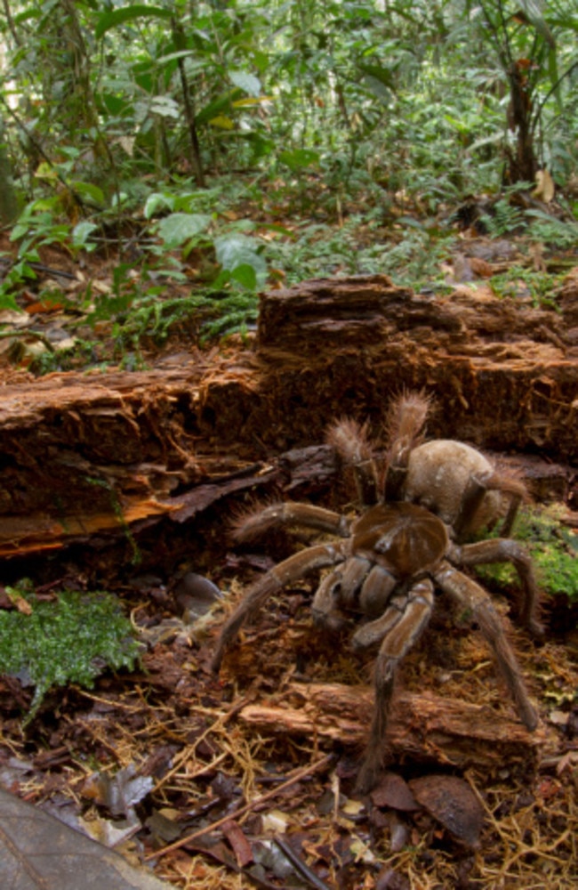 IMAGINE a venomous spider the size of a puppy that fires clouds of microscopic barbs. That’s what one man encountered in a South American rainforest.