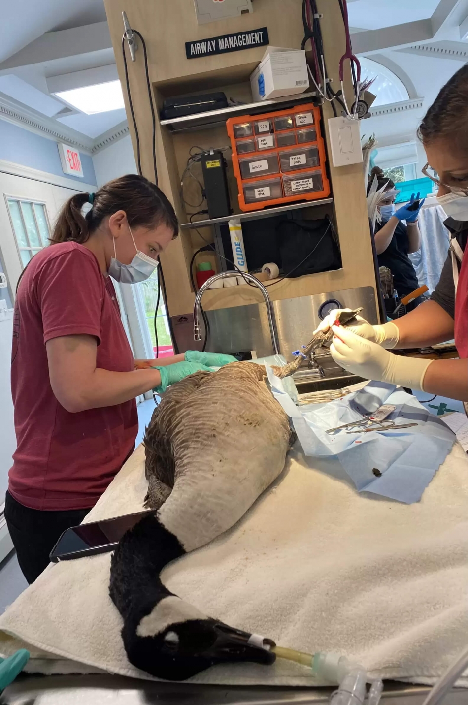 Staff at the center had this to say about the goose couple: “As we prepared to sedate Arnold and get him ready for surgery, we heard a faint tapping at the clinic door. We turned to see that his mate had waddled up onto the porch and was attempting to break into our clinic! She had somehow located him …” Whatever said and done, the surgery done on Arnold’s foot was a success, and his mate wanted and demanded nothing less. The staff also wrote: “She remained there throughout the entire procedure, watching us work, never moving from the doorway.”