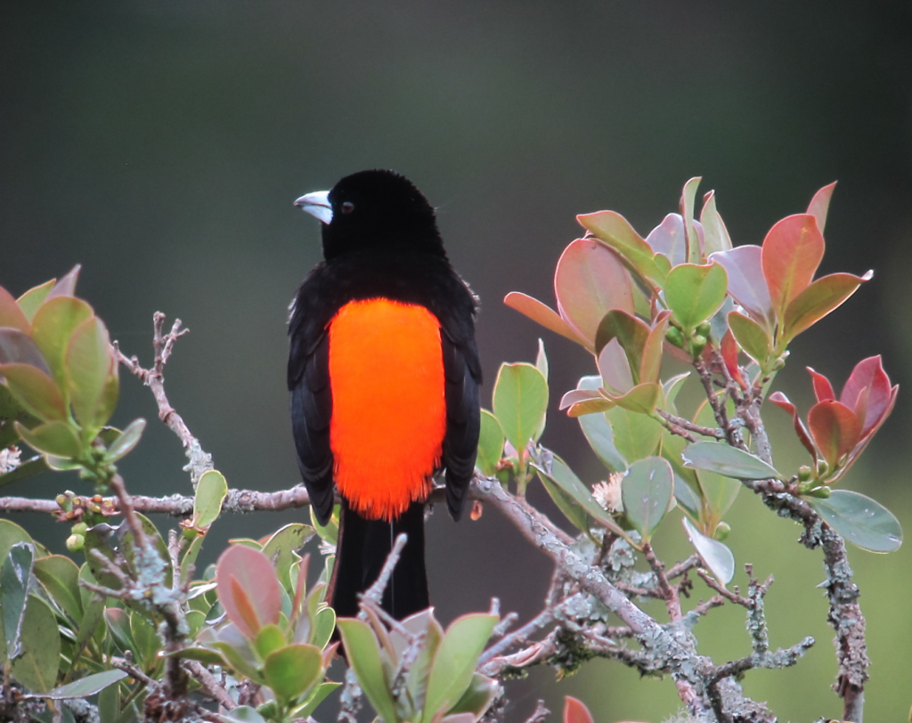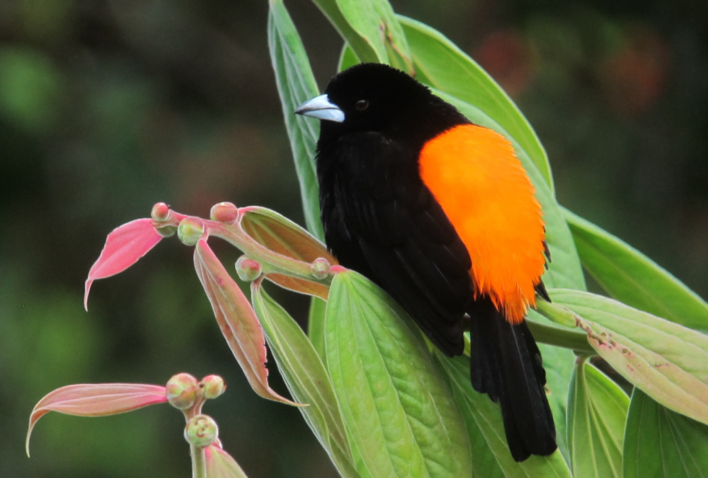 Flame-rumped tanager likes to inhabit primary forest and edges, second growth, overgrown areas, gardens, and parks. Subspecies icteronotus seem to be excluded from the primary forest.