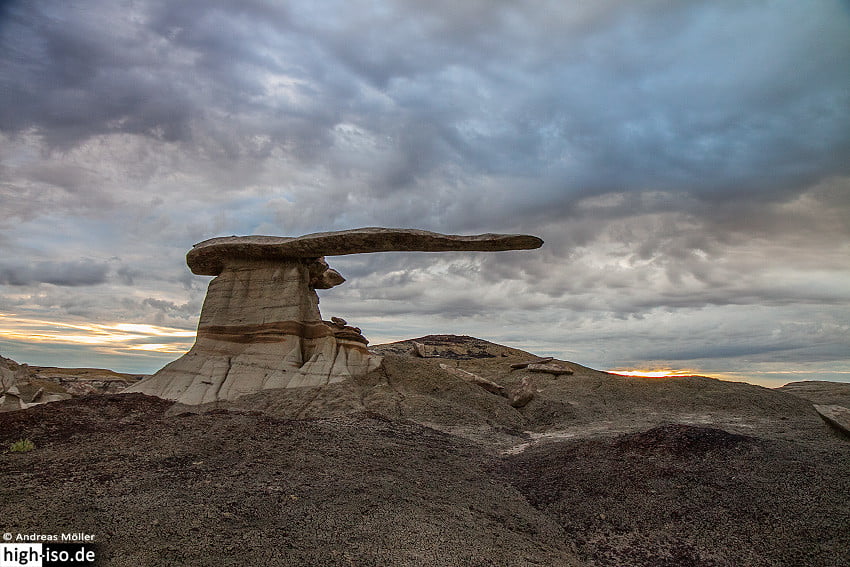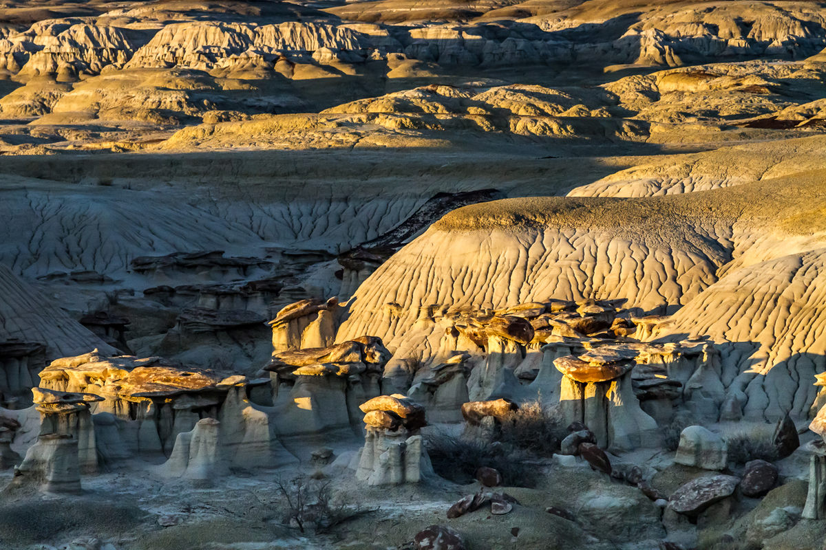 Nearing sunset at Ah-Shi-Sle-Pah badlands, New Mexico. Image credit: Syabek