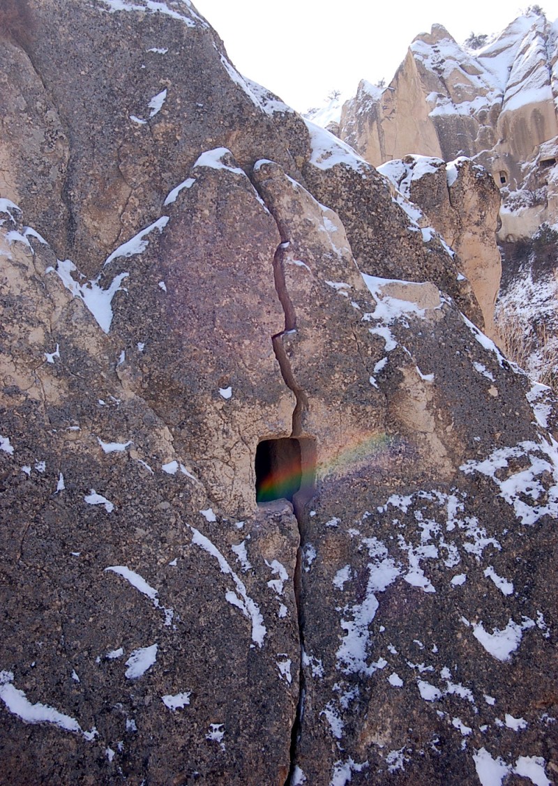 Rainbow and cracked fairy chimney in Cappadocia, Turkey. Image credit: Curious Expeditions